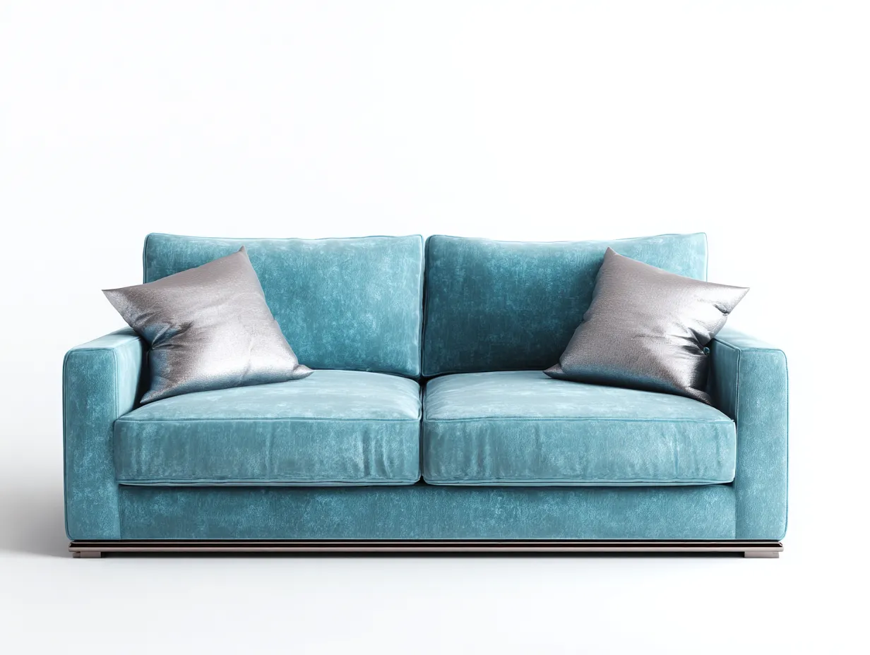The sofa is upholstered in teal fabric with a soft-touch surface. The internal structure is built for stability, and the upholstery is neatly finished to ensure durability and consistent comfort.